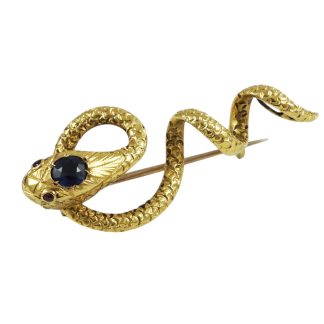 Late Victorian Diamond & Ruby Brooch, 18ct Yellow Gold