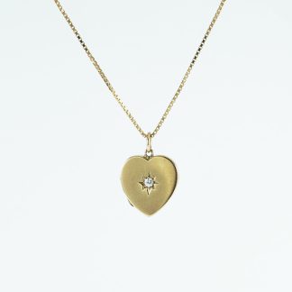 Vintage Diamond Set Heart Locket & Chain, 9ct Yellow Gold