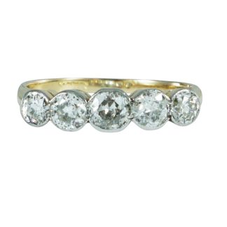 Antique old cut diamond 5 stone ring, 18ct gold and platinum circa 1900