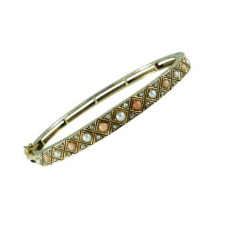 Antique Coral, Pearl & Diamond Bangle Circa 1900