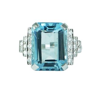 Art Deco Aquamarine and Diamond Ring, Platinum
