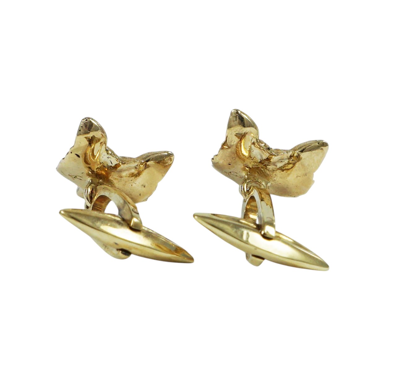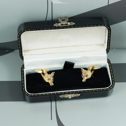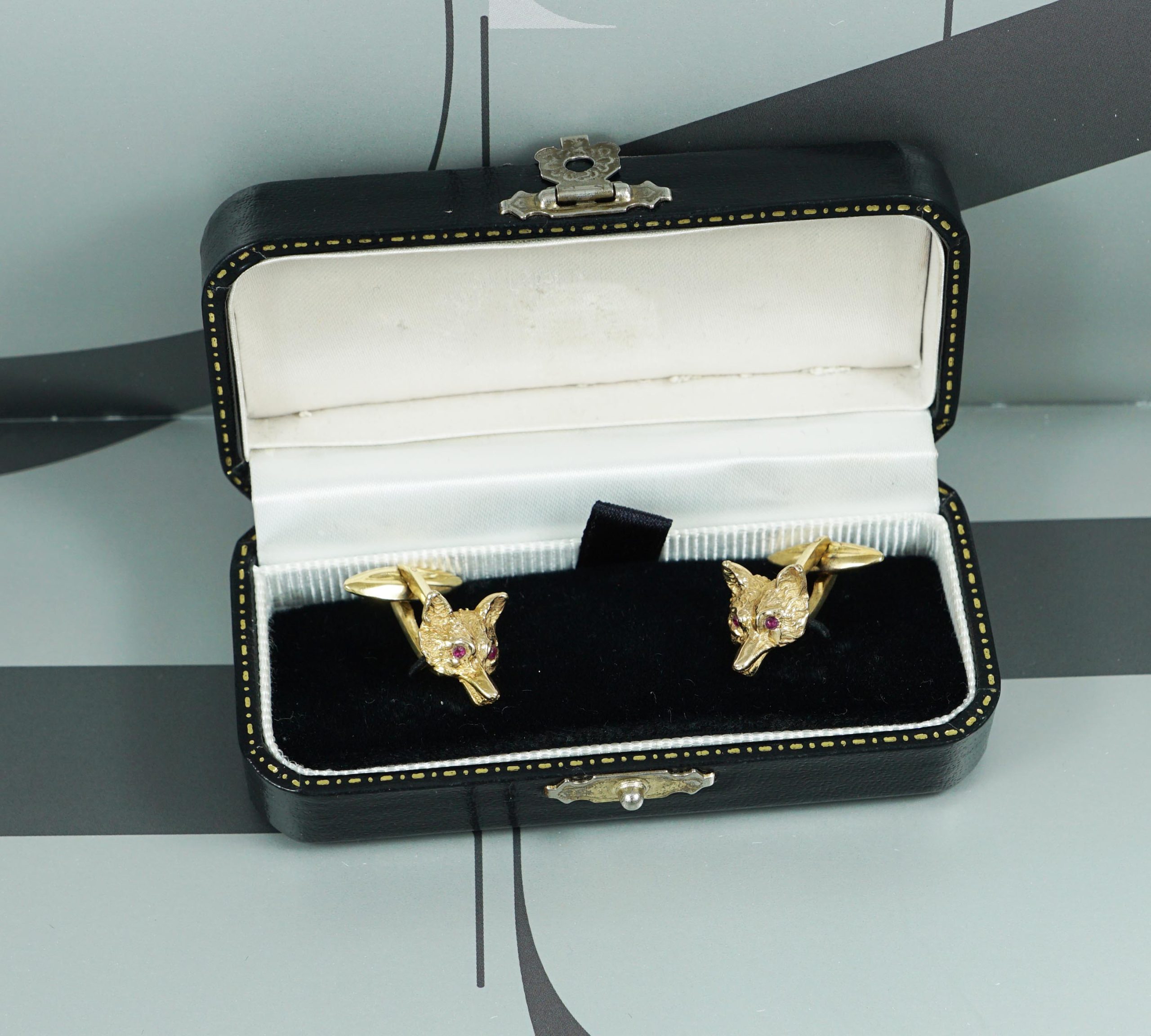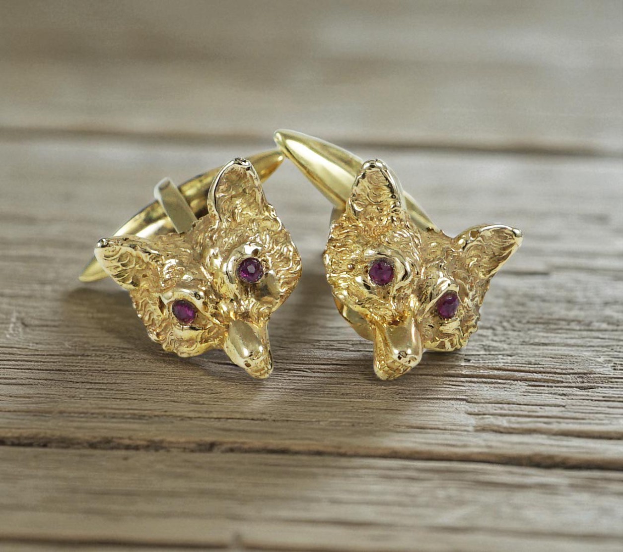 A pair of solid gold fox cufflinks with Ruby set eyes