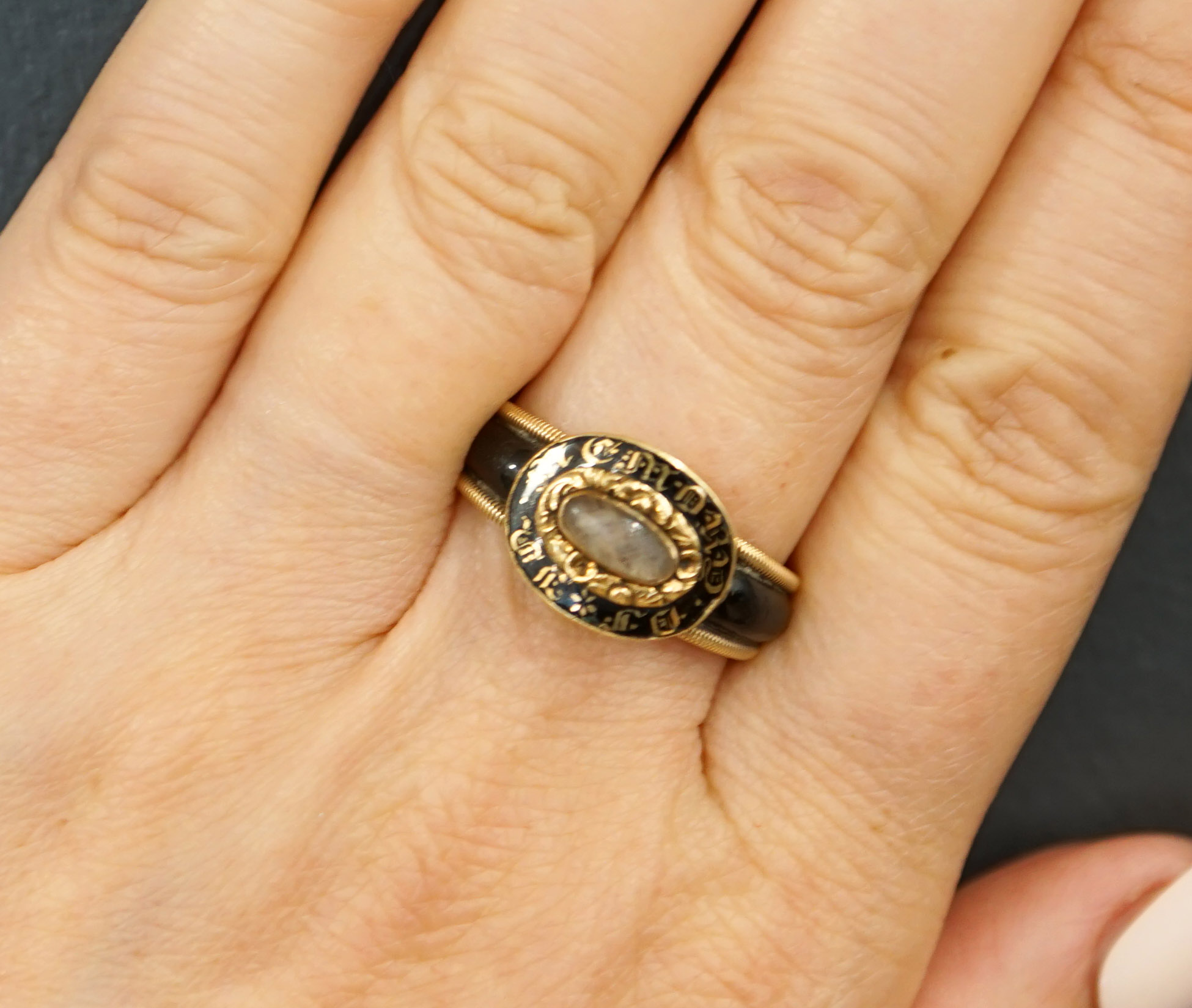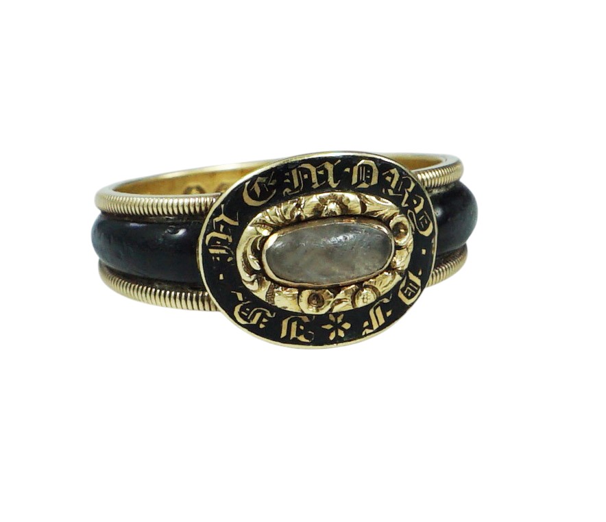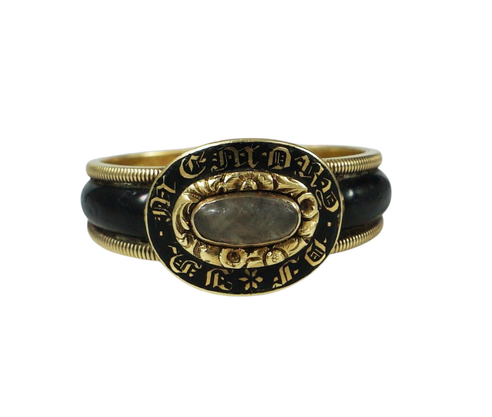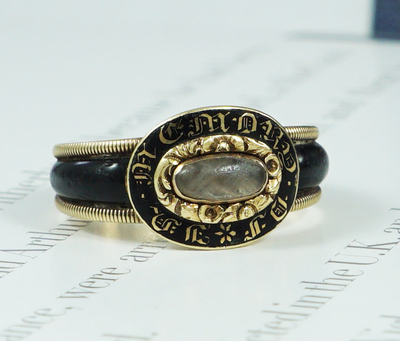 Black Enamel Mourning Ring, 18ct Yellow Gold