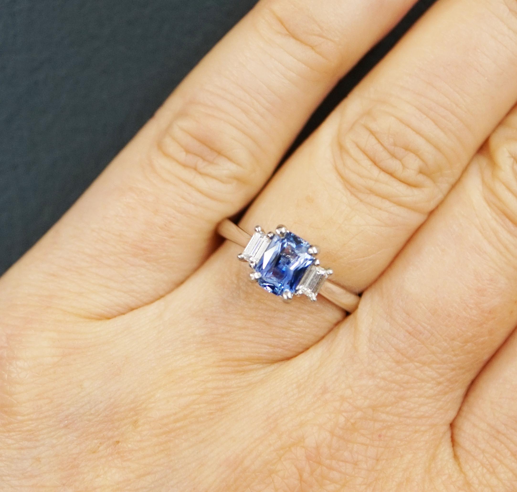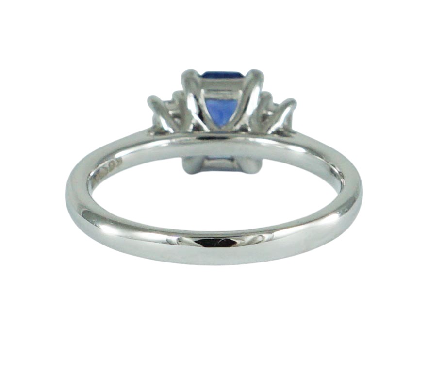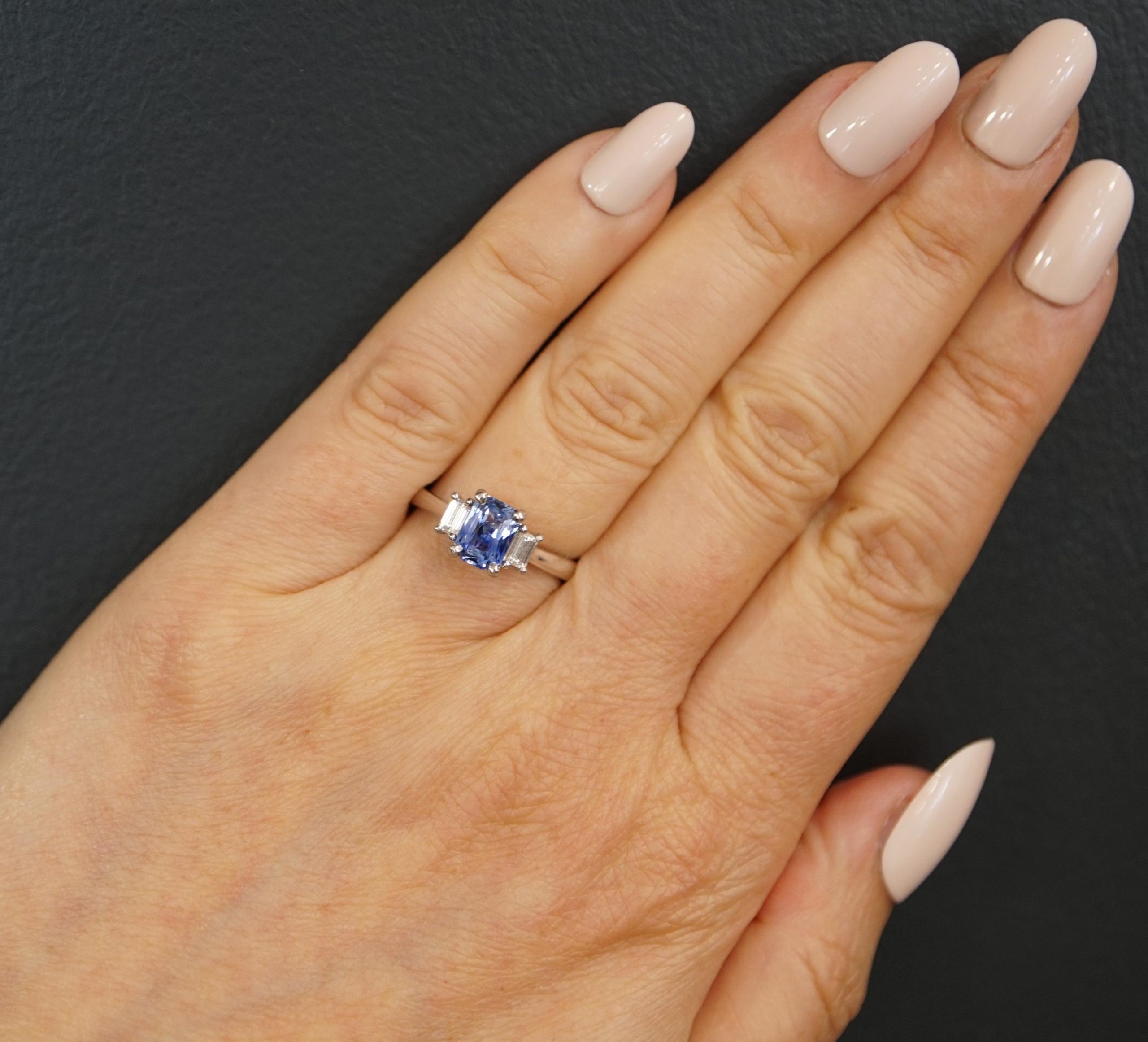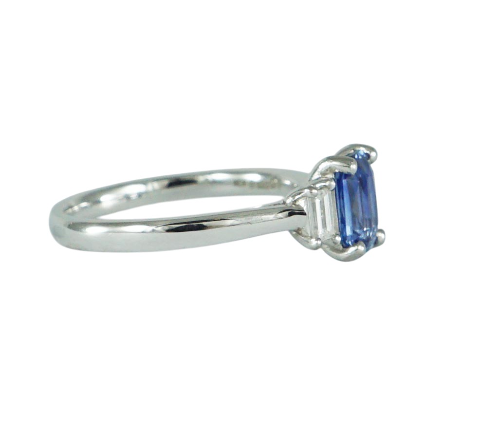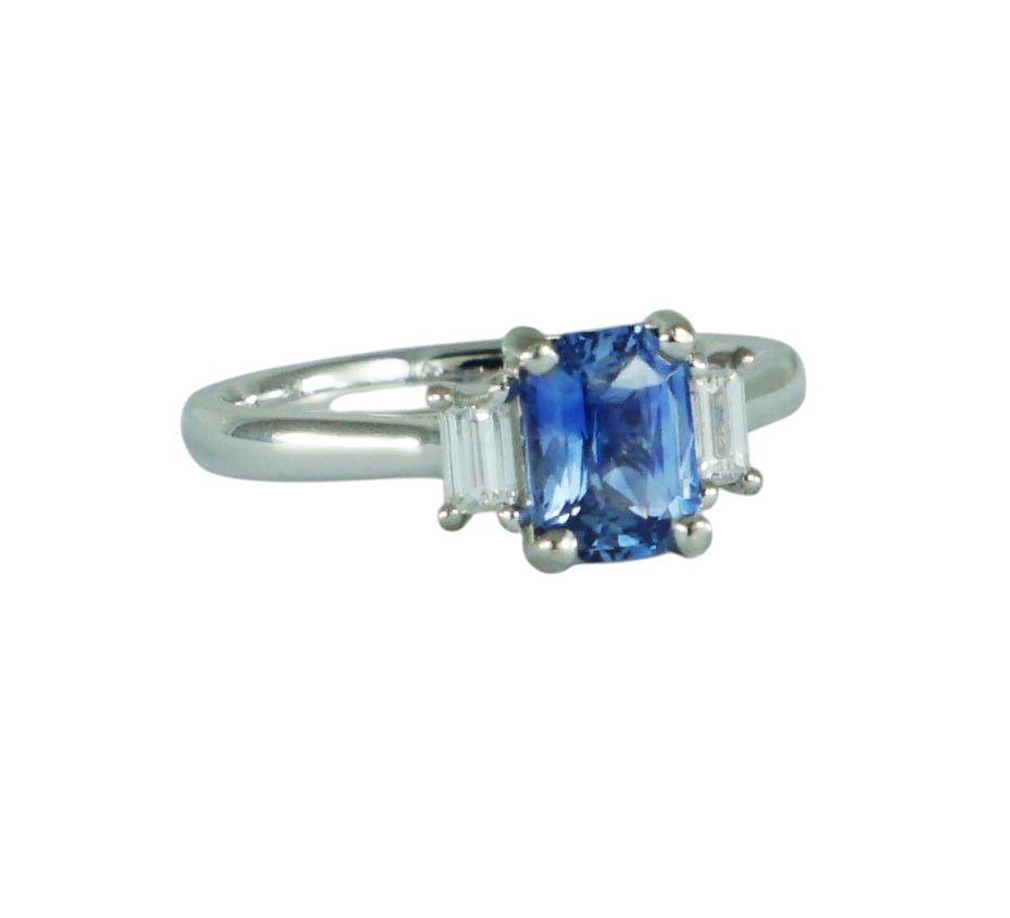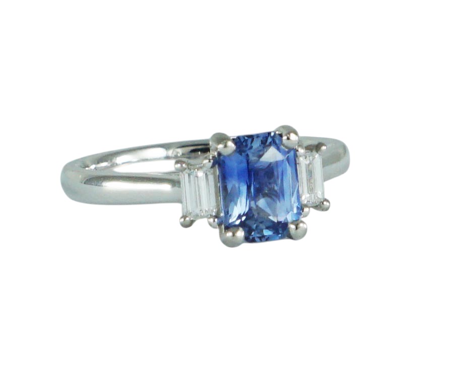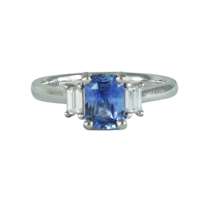 claw set in platinum and flanked either side by two baguette cut diamonds