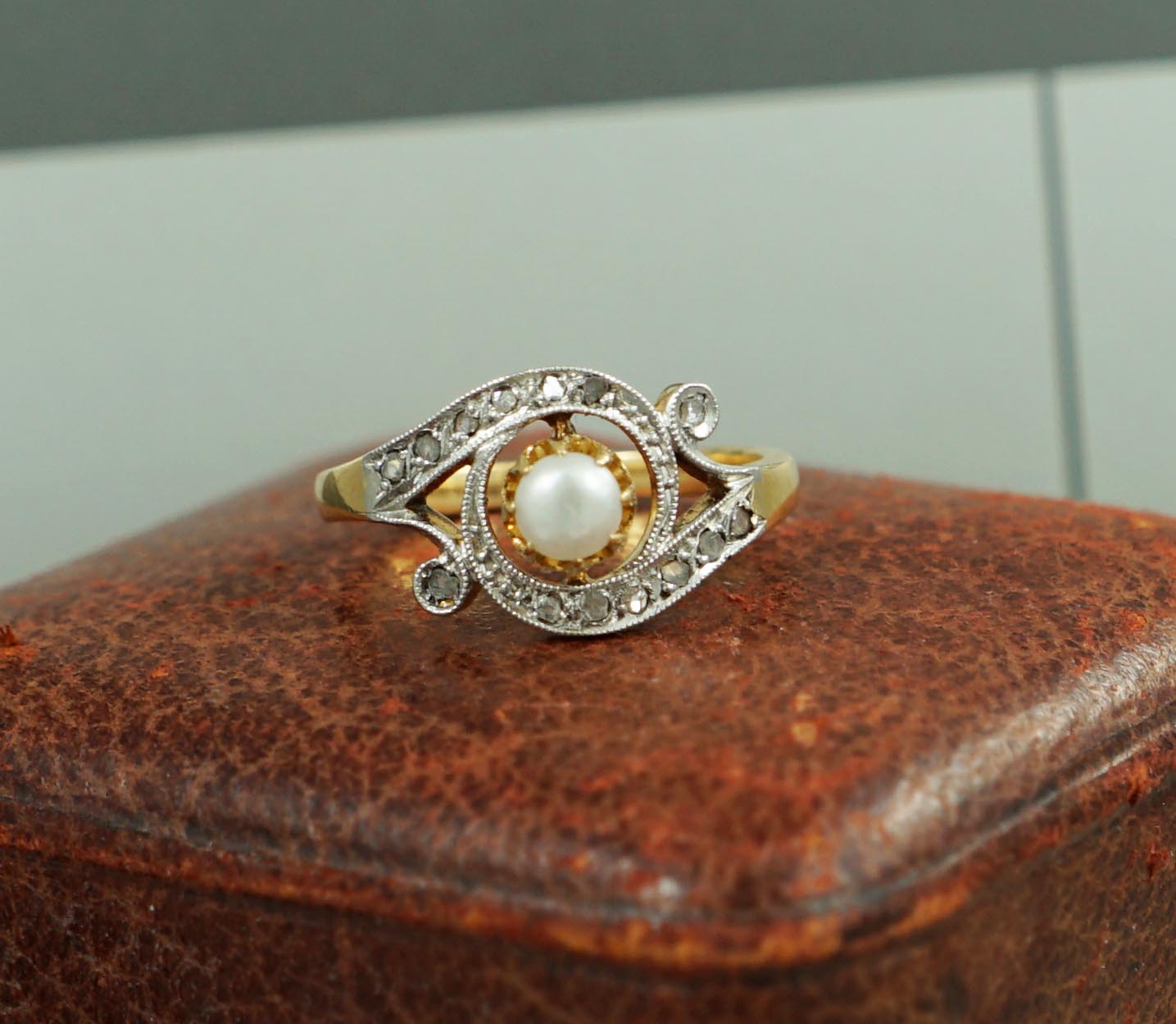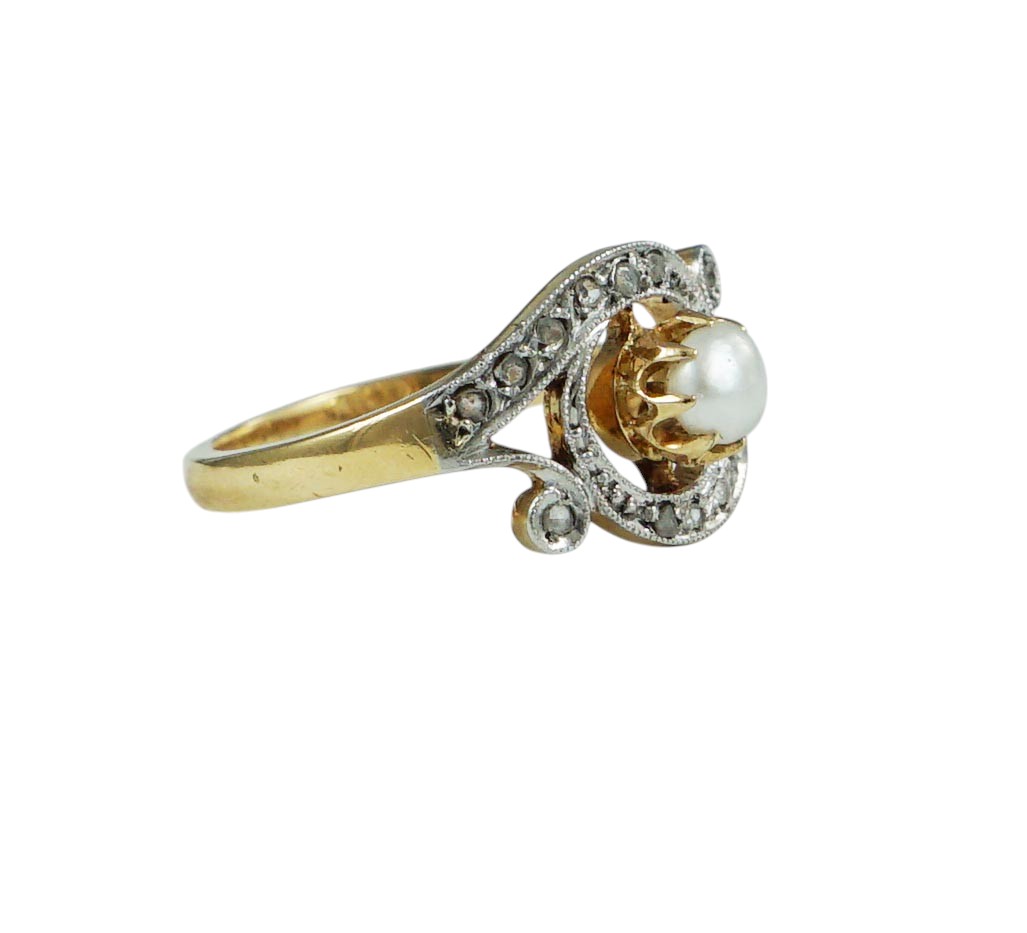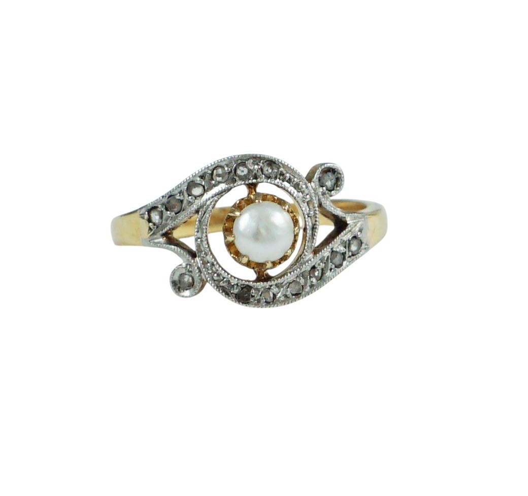 Belle Epoque Pearl & Diamond Ring, 18ct Yellow Gold