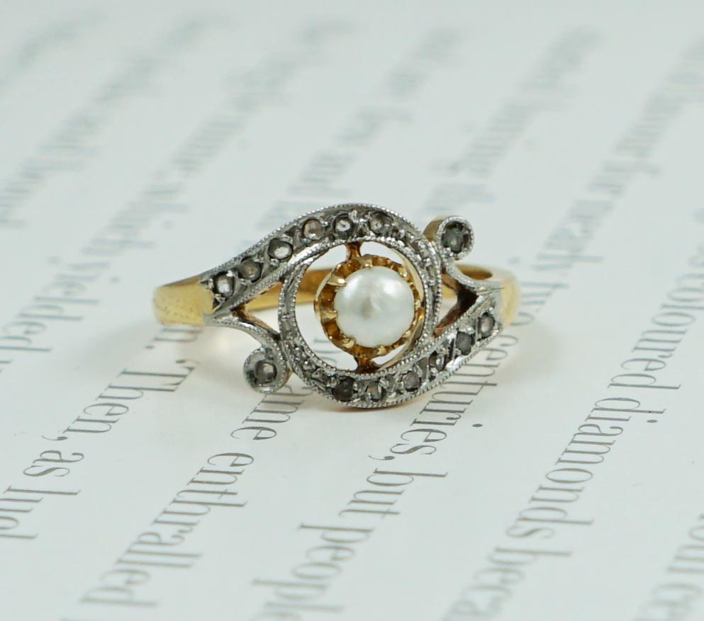 A Belle Epoque Pearl and Rose cut diamond set ring