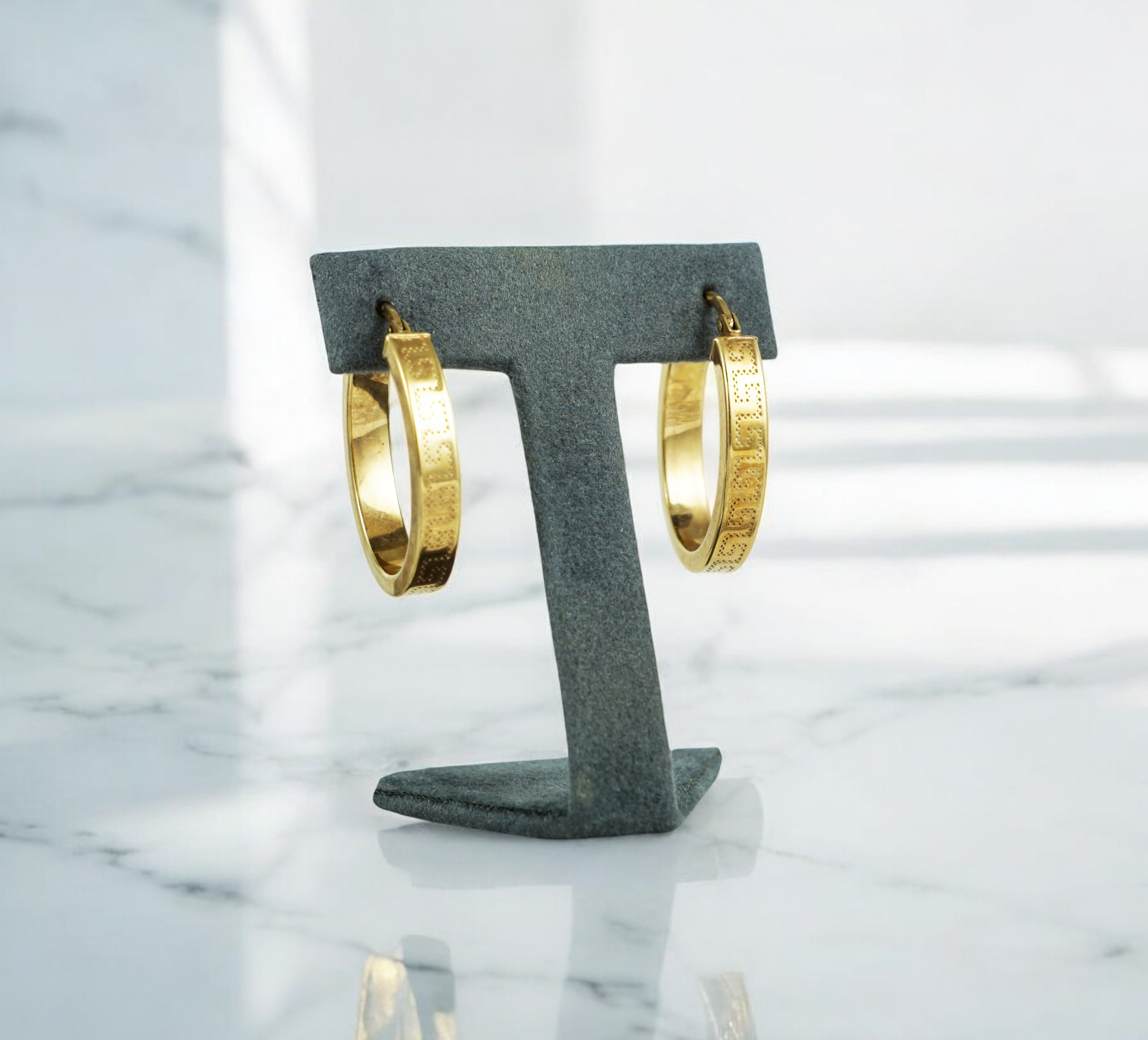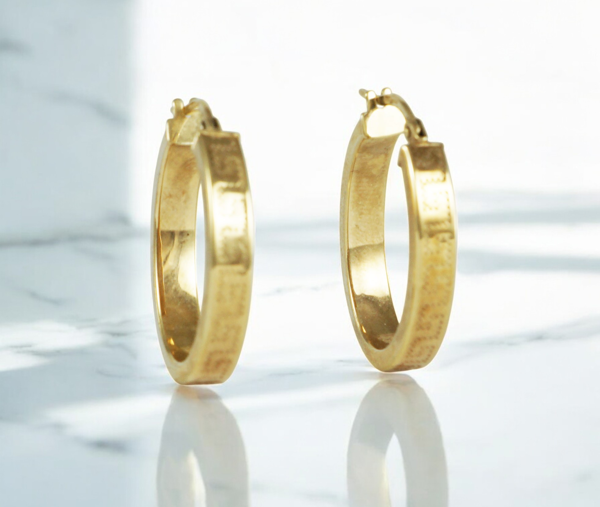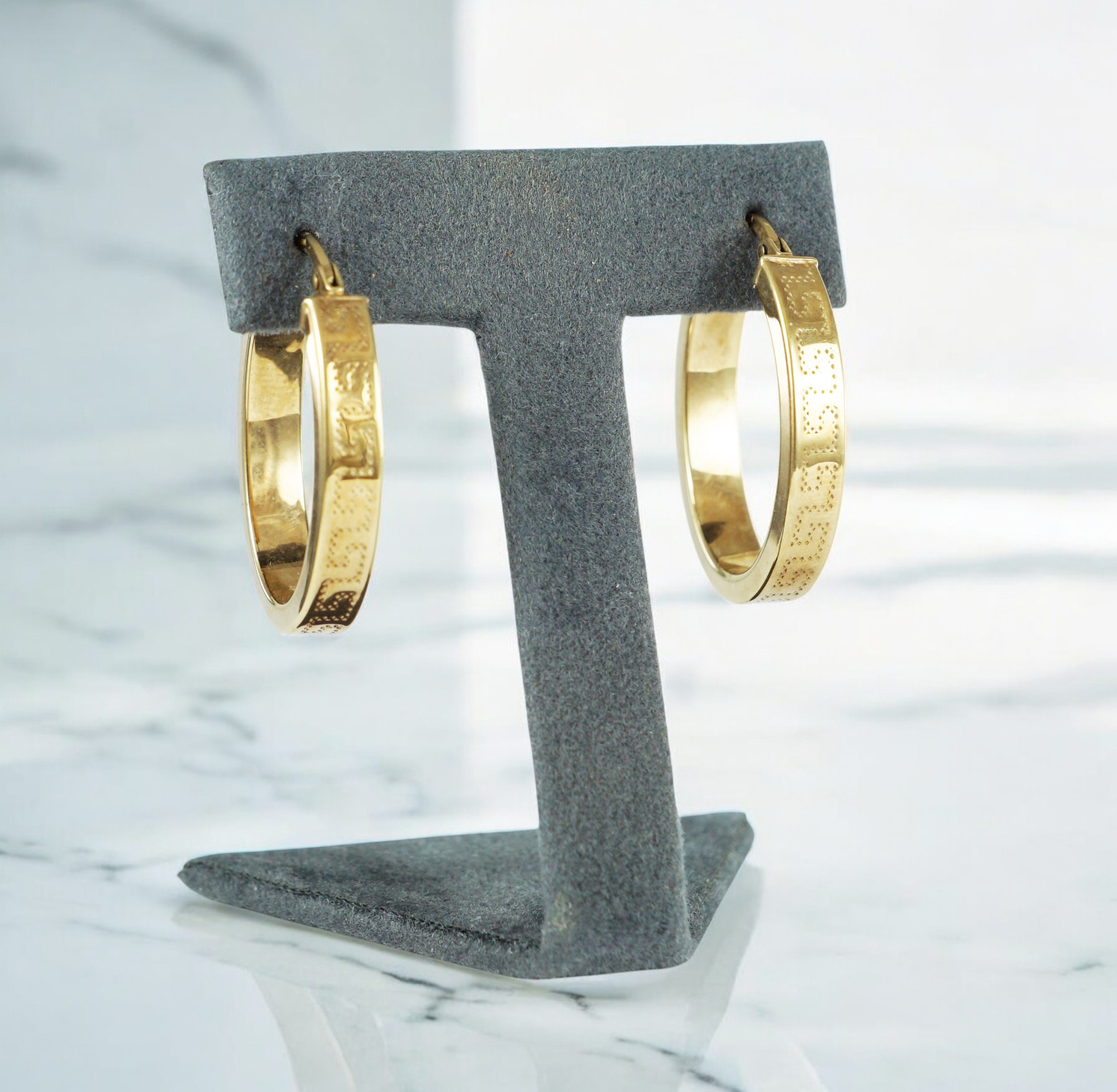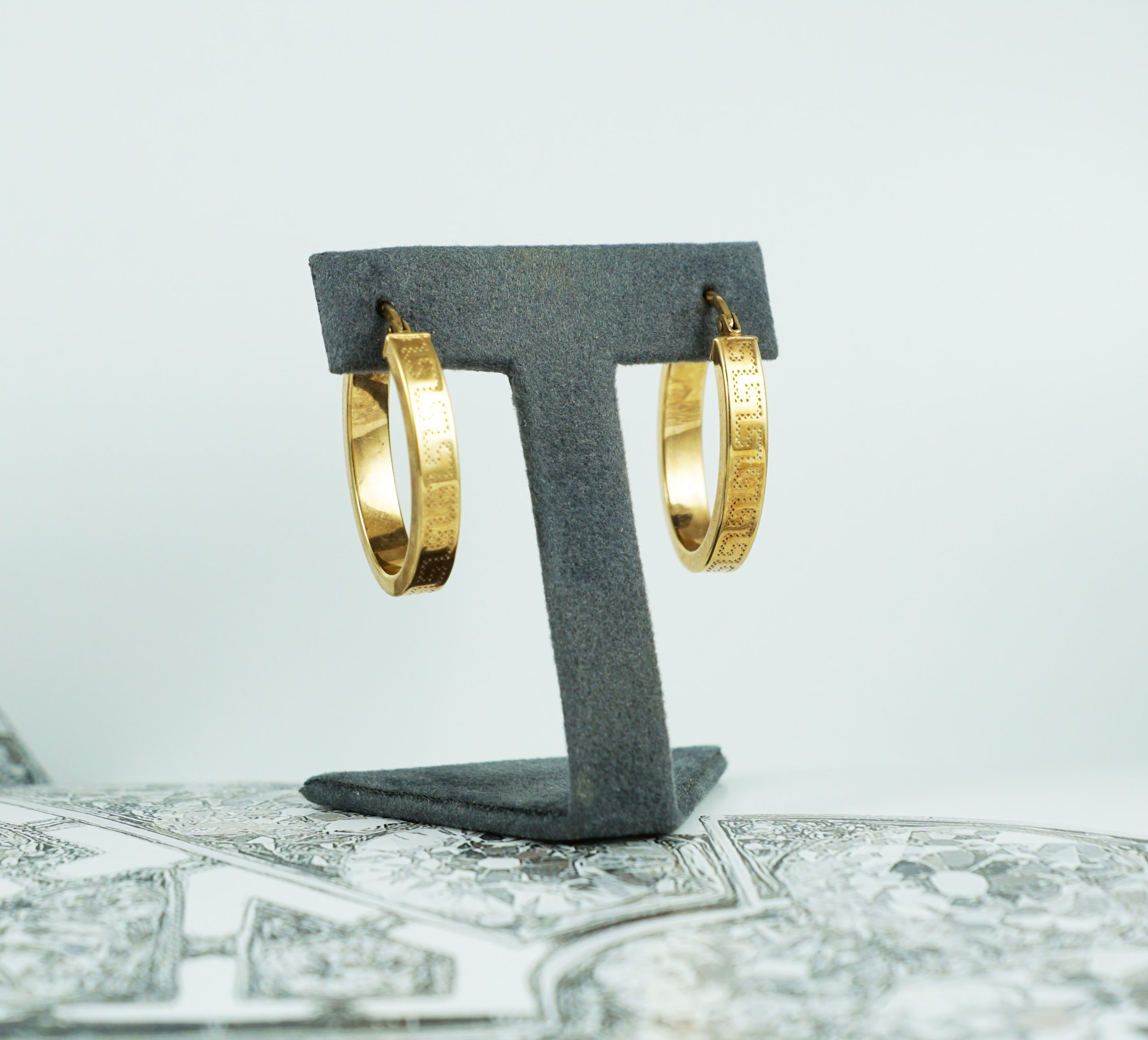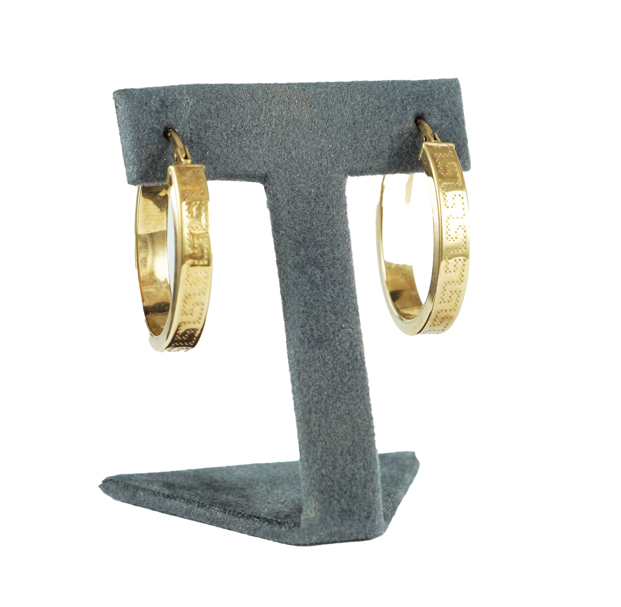 A pair of vintage hollow 9ct yellow gold hoop earrings with engraving detail