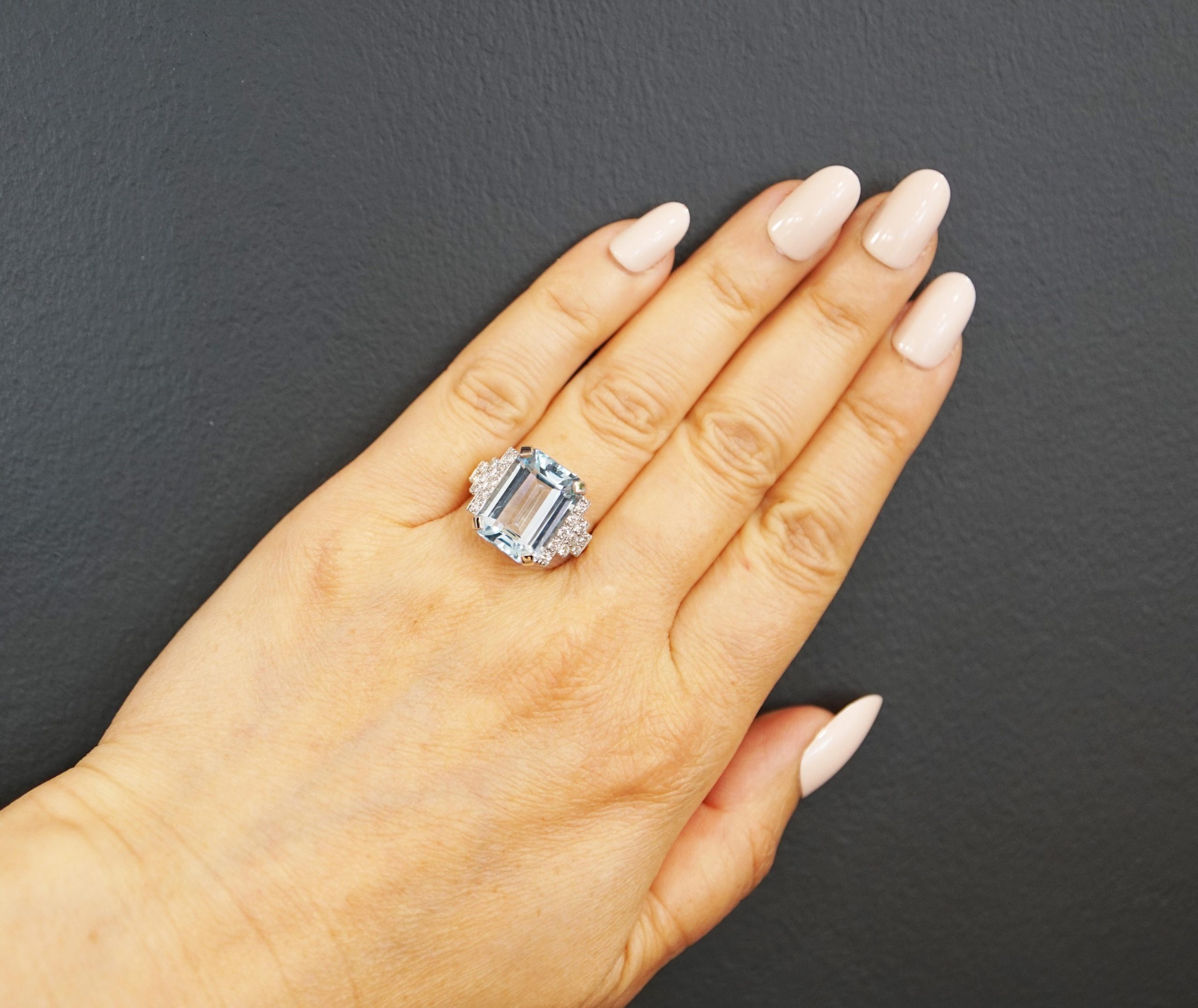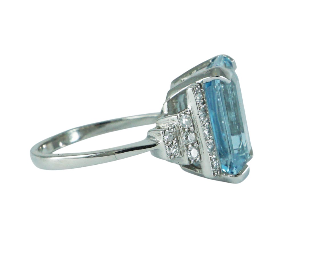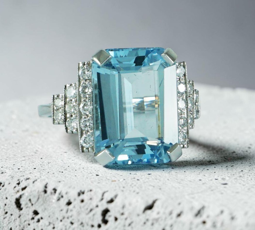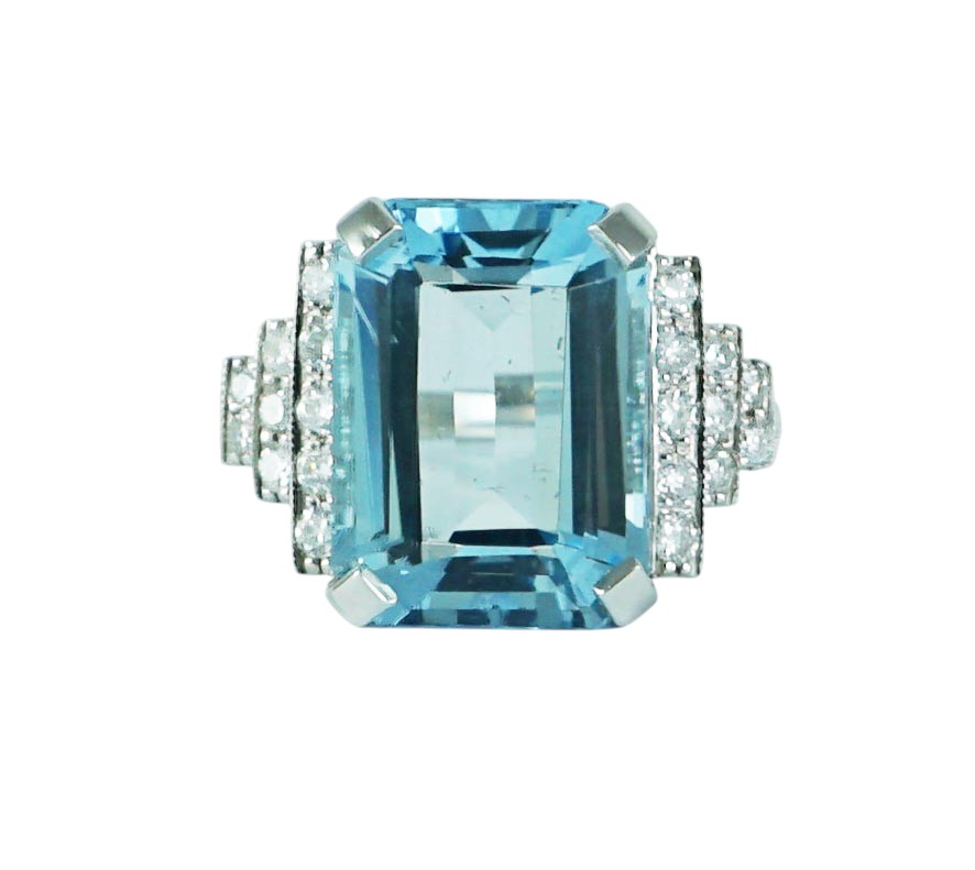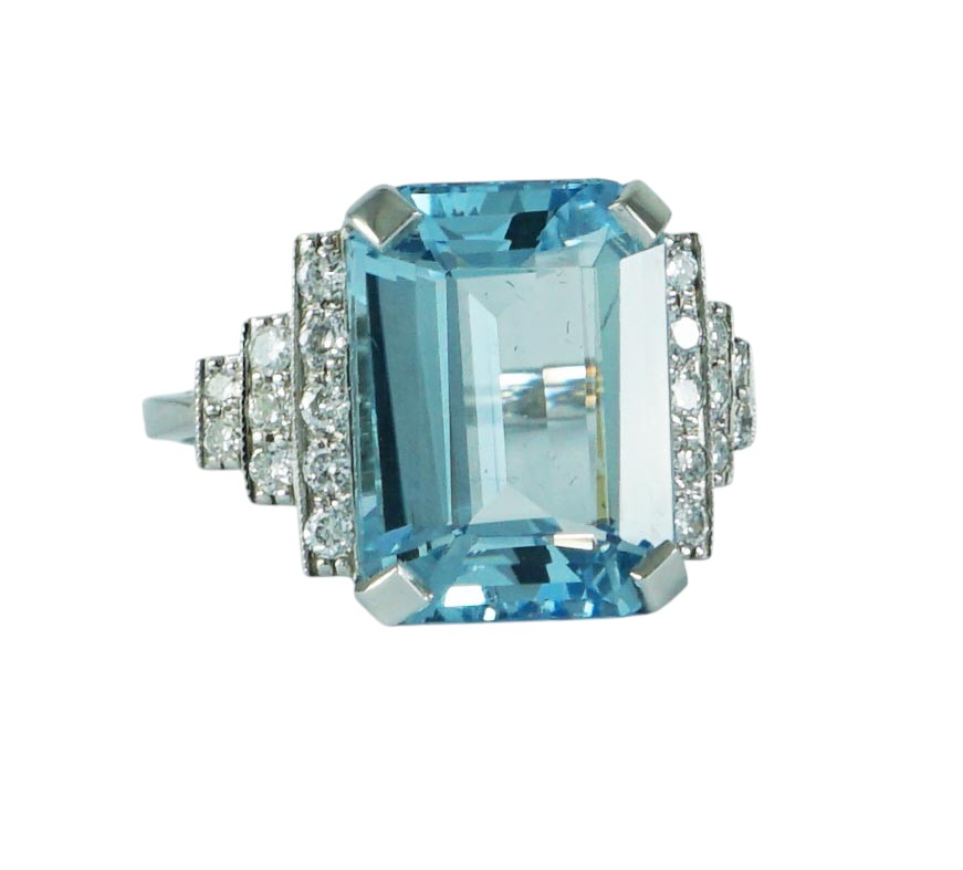 Art Deco style octagonal step cut Aquamarine