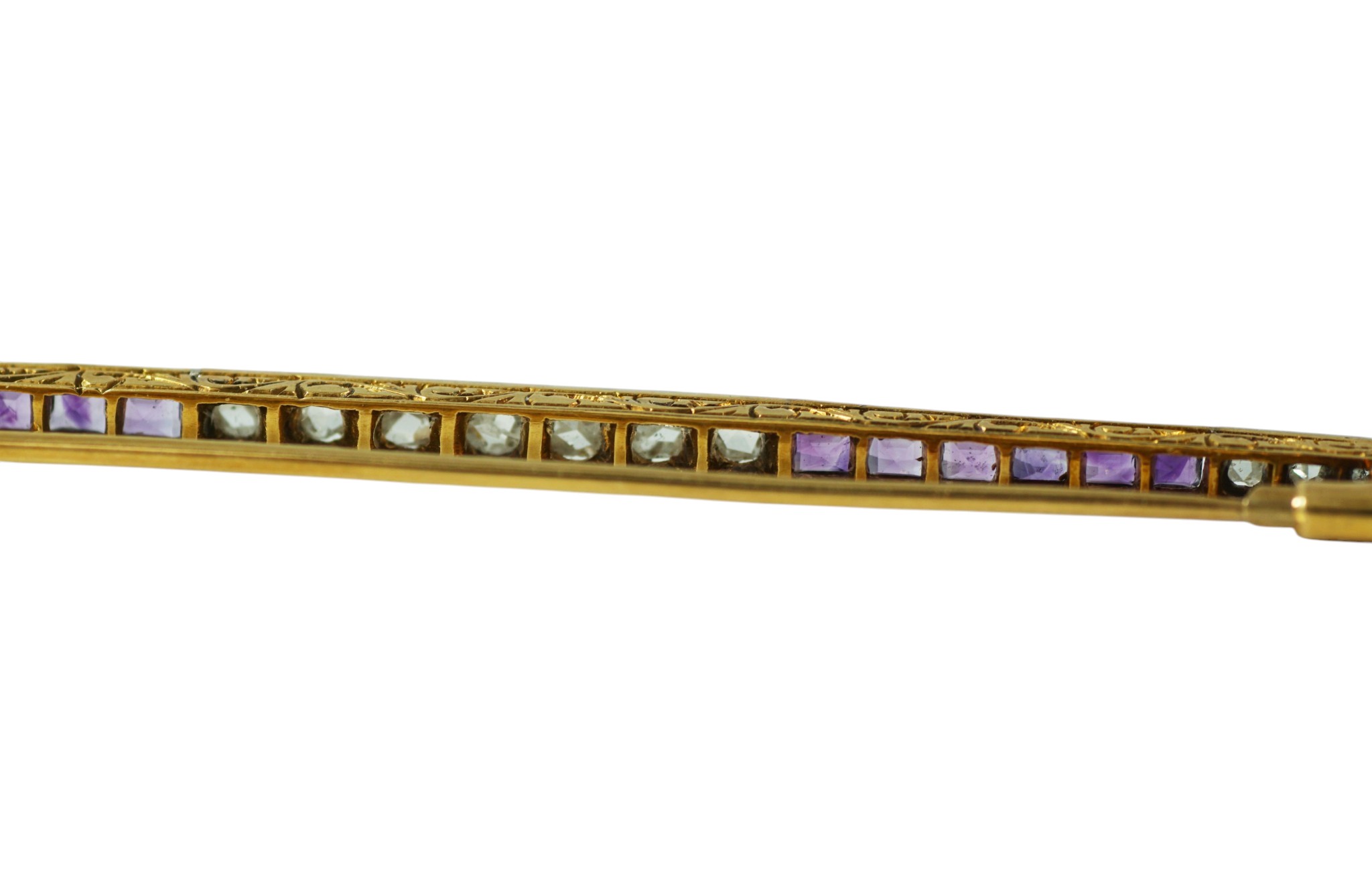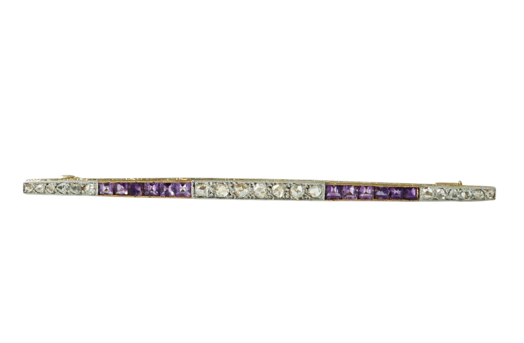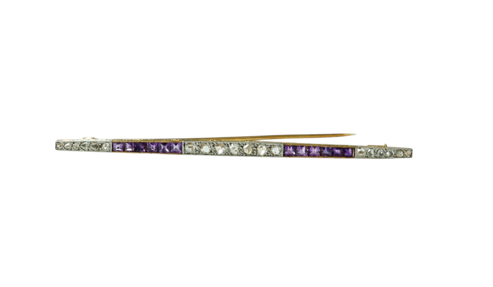 An antique French Amethyst and diamond bar brooch