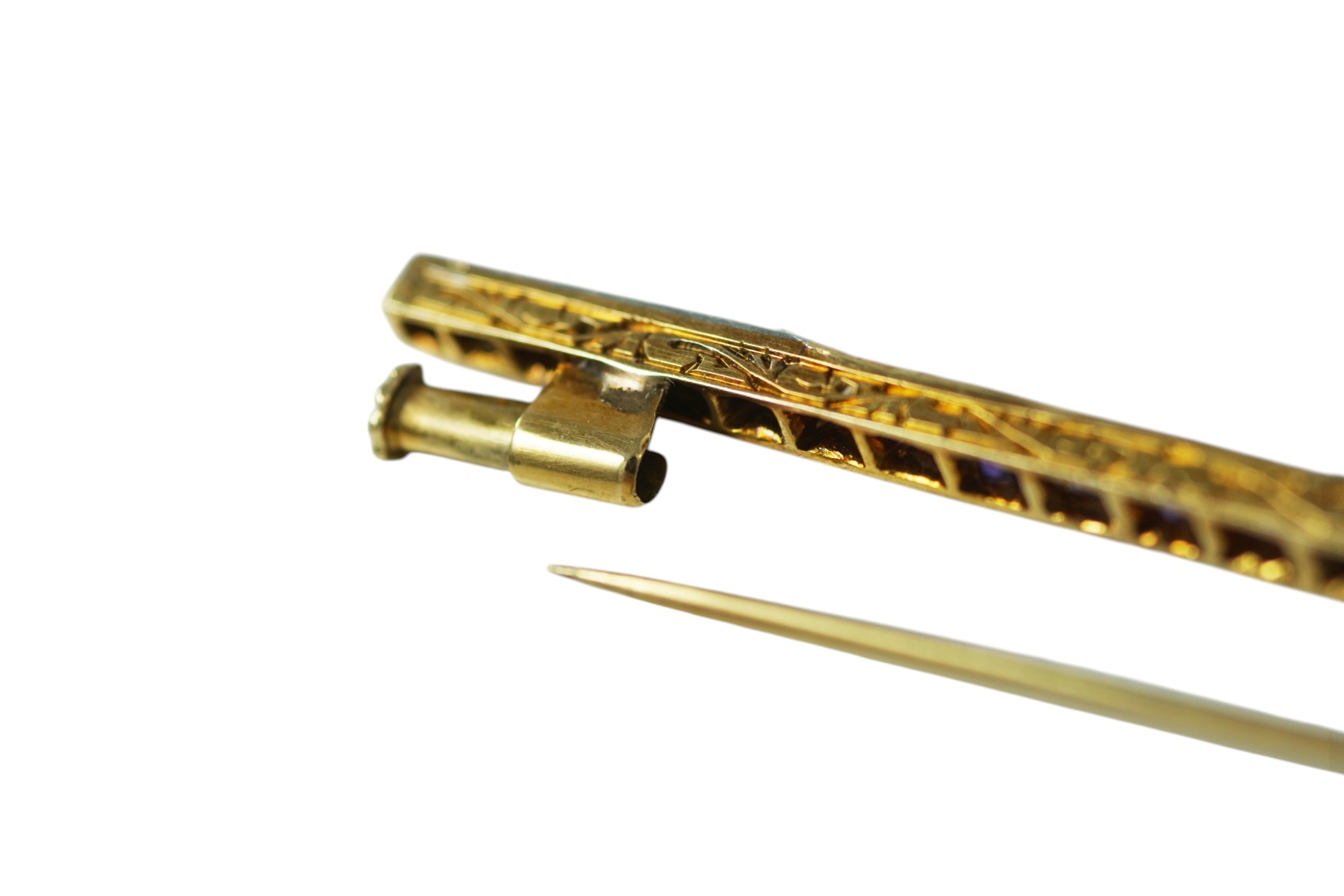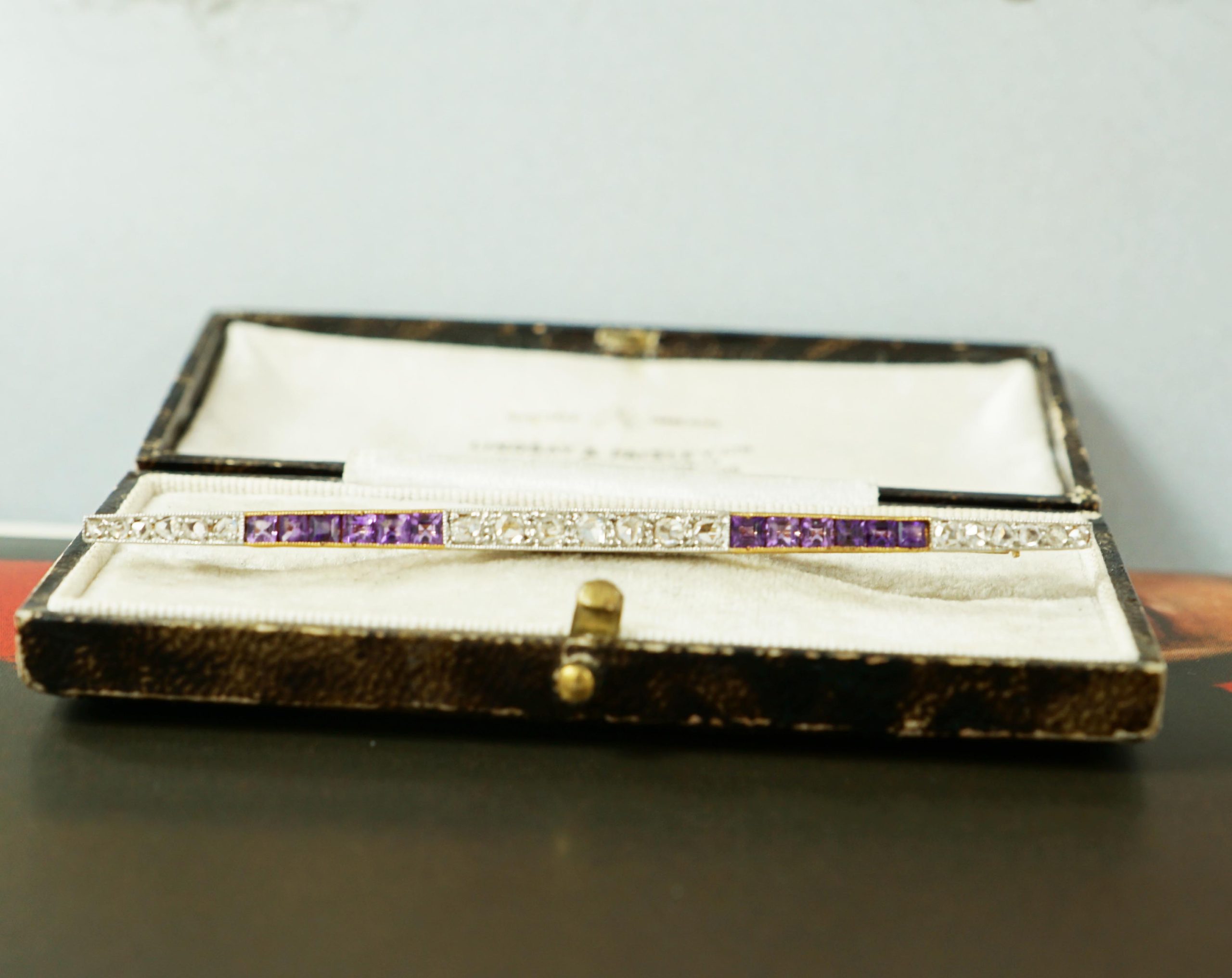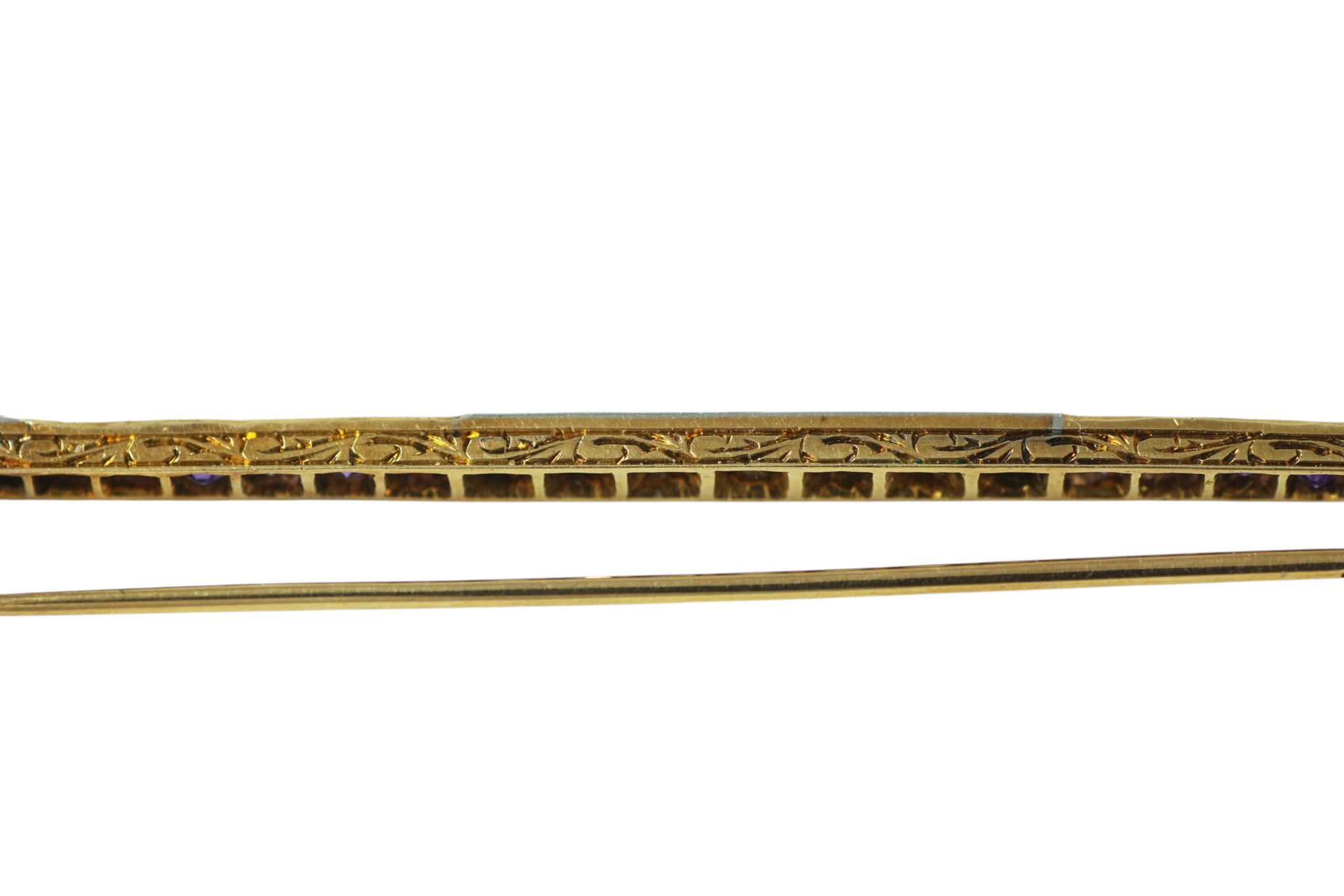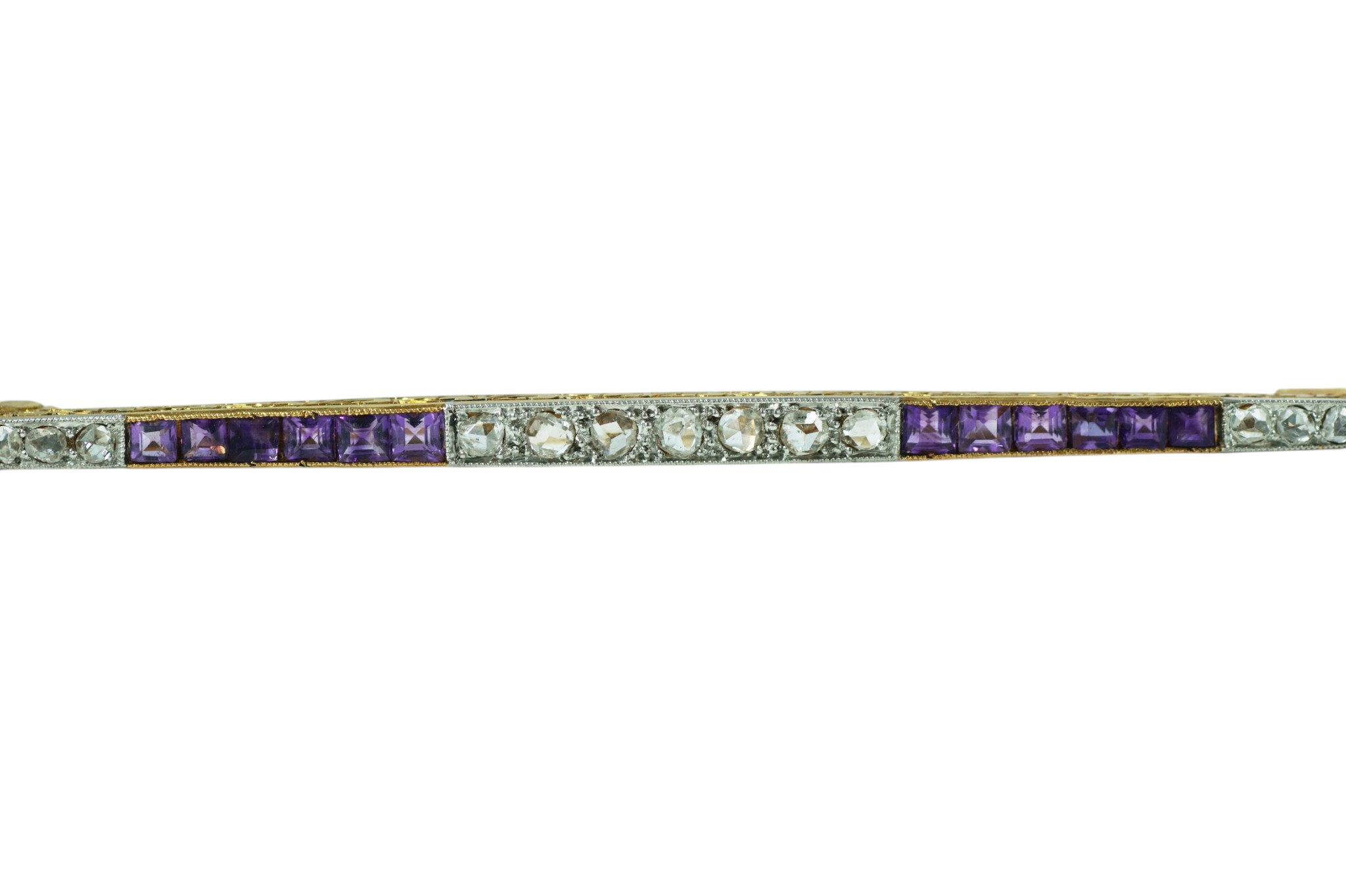 An antique French Amethyst and diamond bar brooch